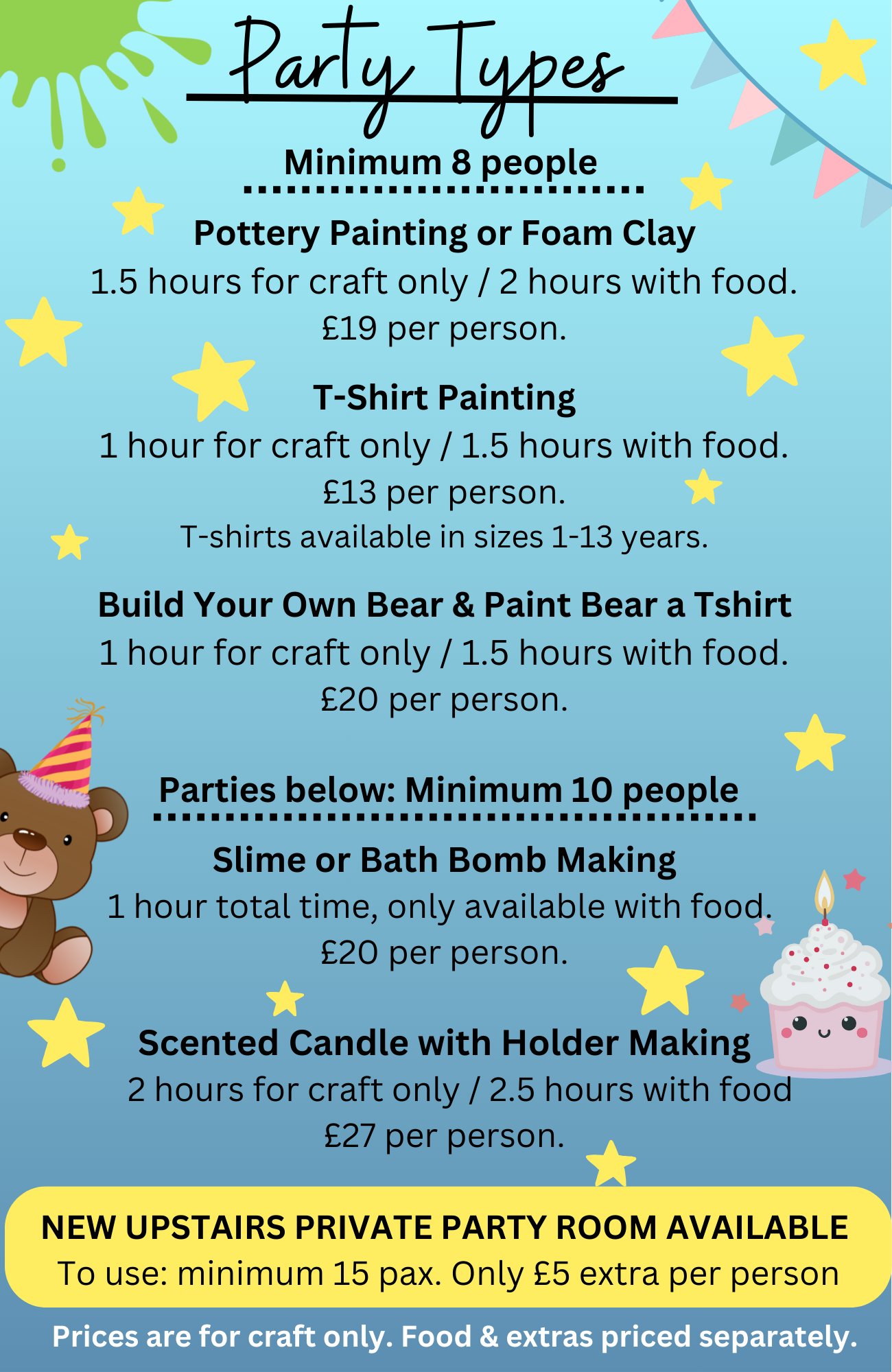 Krafty Koala is the perfect place to have a fun arty party. Our party ranges are suitable for everyone, from younger children to adults, for any occasion, not just birthdays.